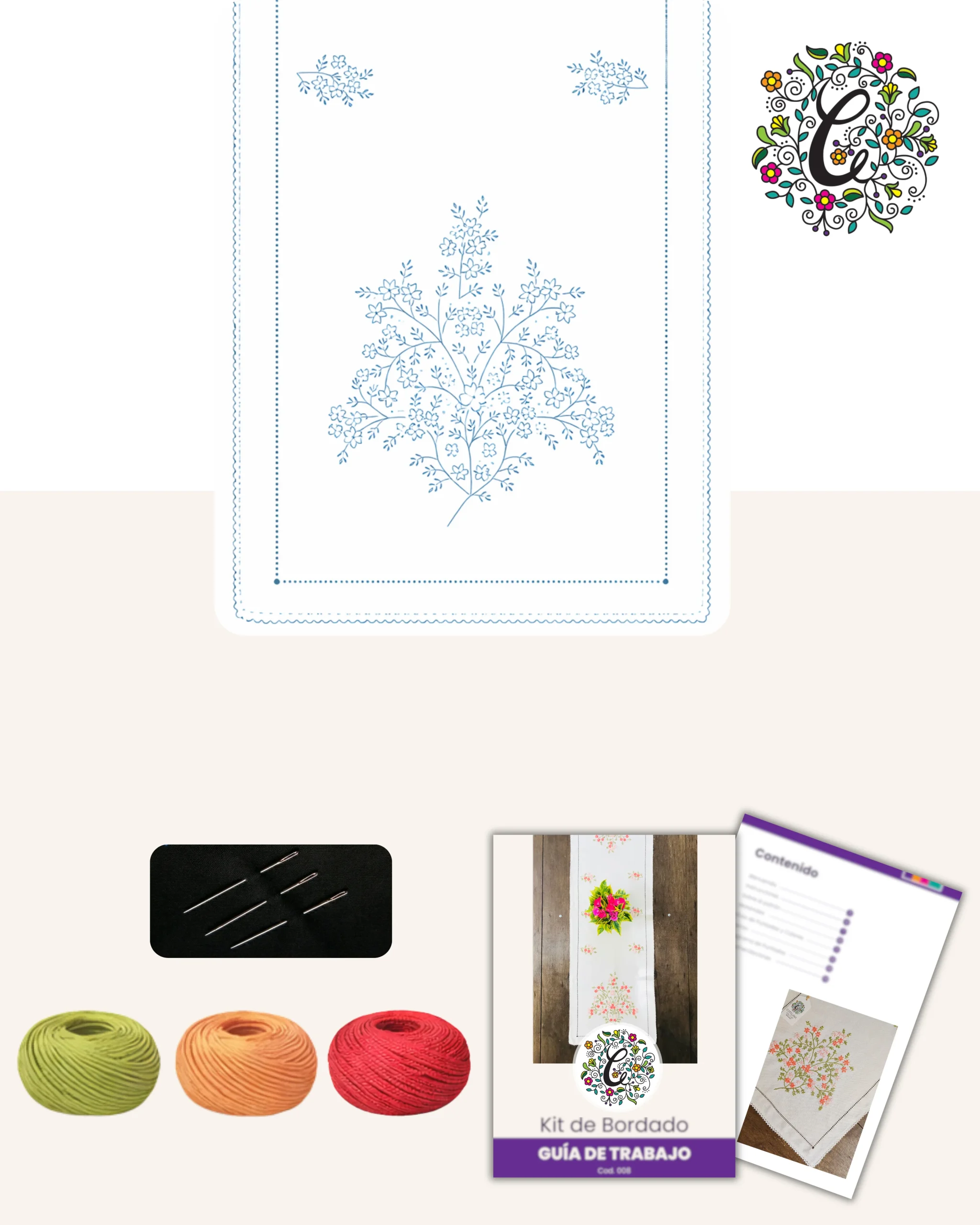 ✔ Tela de algodón con diseño transferido, lista para bordar